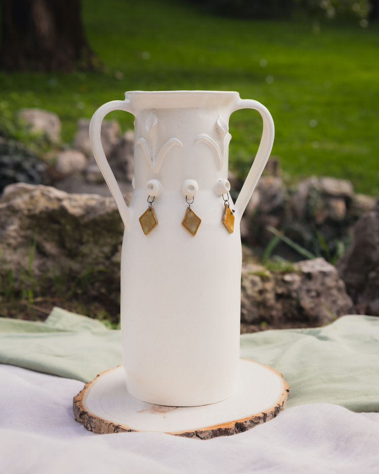 Madrid-based ceramicist Debora Nascimento, draws deep inspiration from her connection to nature, describing herself as a moody artist who channels strong emotions into her work. Her style can feel contradictory at times—both emotive and structured—reflecting the complexities of what she’s working through. She creates from an instinctual place, letting her intuition guide her process. Debora often turns to writing or collaging, using these mediums to gather her thoughts. Dreams play a significant role in her creative process. She seeks clarity from her spiritual guides and interprets her dreams with openness, allowing them to shape her work. Whether bright or pastel, her pieces always carry a feminine energy and are deeply rooted in texture, nature, and emotion.